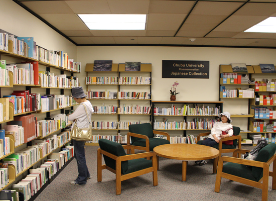 オハイオ大学では、本学から送付した資料を「INTERNATIONAL COLLECTIONS - Chubu Collection」として、学生の日本語教育や日本関連トピックの学習支援資料、日本からの留学生に必要な資料、中部大学、春日井市、愛知県との理解を育む資料として、1階の「The Chubu Reading Room」で、オハイオ大学コミュニティに提供しています。この閲覧室は、日本人学生が故郷のニュースを読みに来るのに人気の場所であり、アメリカ人学生などが日本文化を味わう場でもあります。
